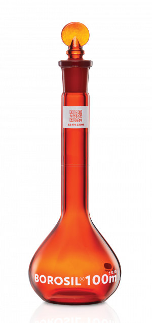 The choice of volumetric flask depends on application-specific requirements such as light sensitivity, reagent volatility, or volumetric class tolerance.