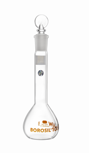 To use a volumetric flask correctly, pre-rinse with solvent, dissolve the solute, fill near the mark, align the meniscus, and invert to mix. Borosil Scientific’s design supports this with fit-tested stoppers and certified marks.