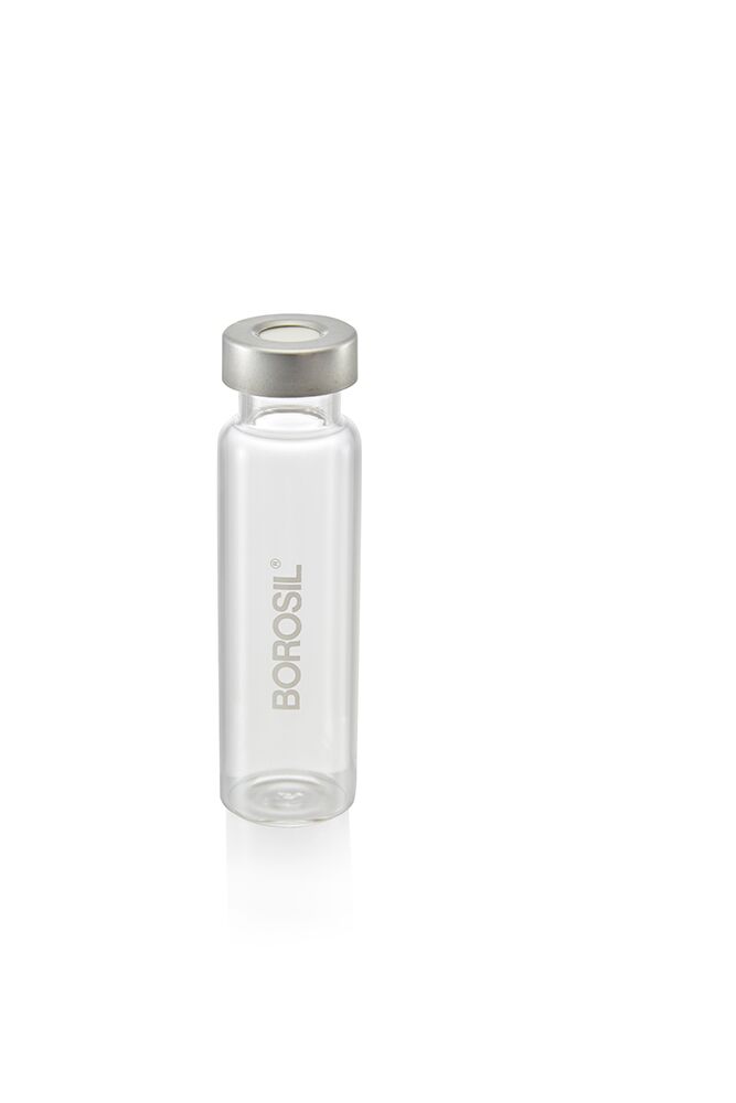 20mm Crimp Top Round Bottom Clear Vials made from Borosilicate USP Type I 49-Expansion glass 20 mL Volume, with Certified 20mm Closure Silver Aluminium Crimp PTFE-Silicone Septa